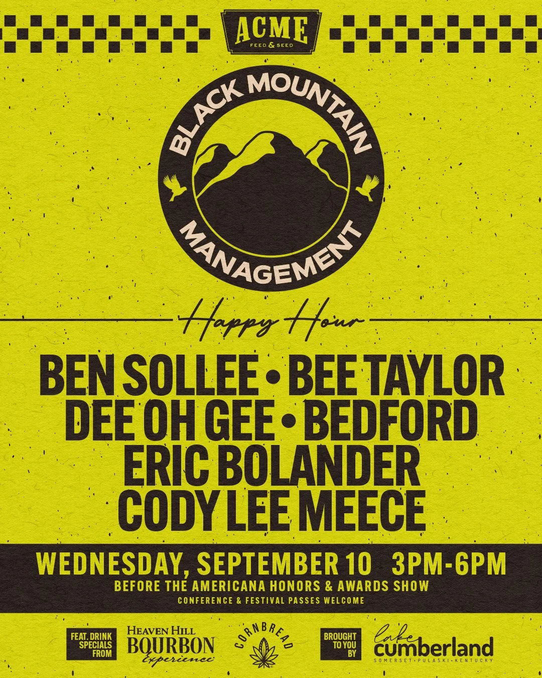 Join us for Black Mountain Management Happy Hour from 3-6PM (right before the Americana Music Association’s Honors & Awards Show).