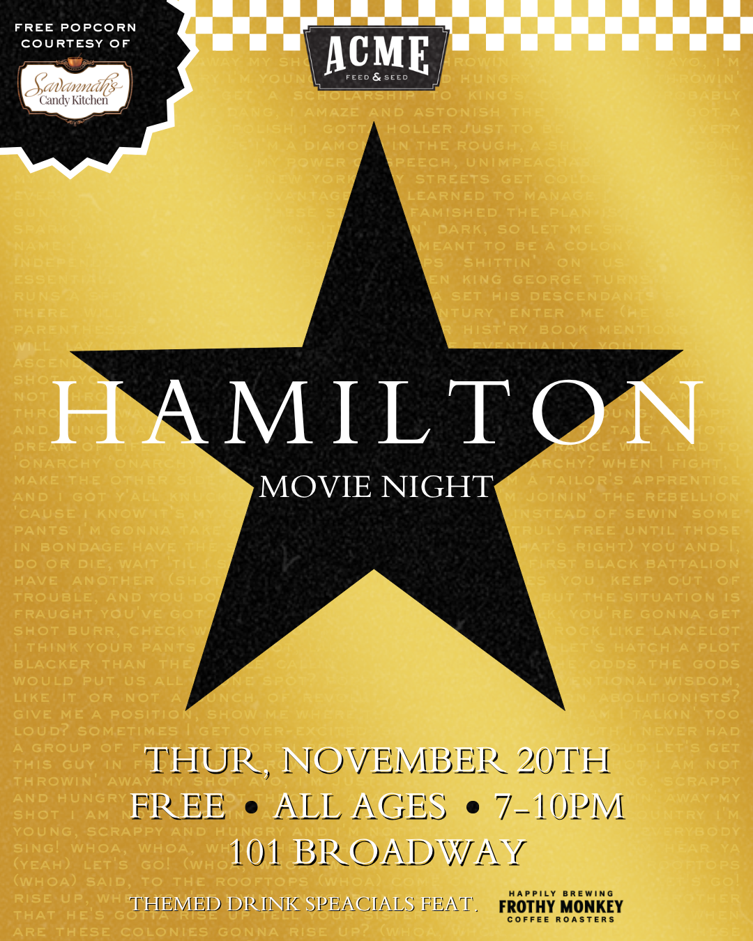 Get ready to experience the magic of Hamilton under the stars! Join us for a special rooftop screening of the hit musical in downtown Nashville.